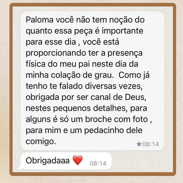 A qualidade dos materiais, a personalização e o cuidado do trabalho manual. Cada criação é única, respeitando o desejo de quem encomenda, com dedicação e atenção a cada detalhe.